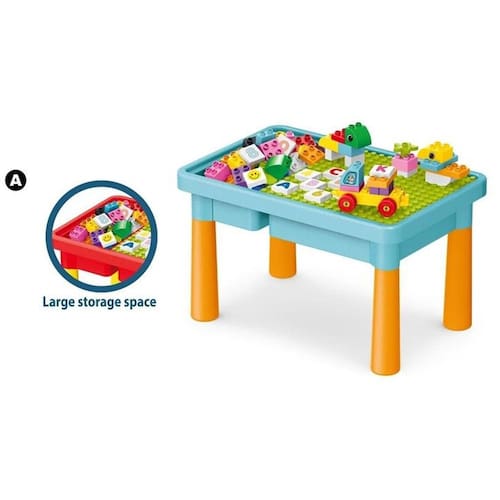 1 mesa de blocos infantil 1 placa de montar 1 saco de blocos de montar