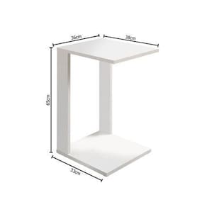Mesinha De Canto Para Encaixe Lateral Ao Sofá Sala Madeira Móvel de Apoio Decorativo é perfeito para o seu lar Além de seu design sofisticado e ideal para enfeites e decorações, esse móvel é extremamente versátil possibilitando seu uso como mesa de apoio. Utilize em sua sala, quarto, escritório ou qualquer ambiente que deseja decorar com bom gosto e criatividade. Sua versatilidade permite que nossos clientes sentados confortavelmente no sofá ou poltrona possam apoiar seu notebook enquanto navegam, quem sabe aquela pipoca e refrigerante durante um bom filme ou utilize no quarto para servir um belo café da manhã. Encontre a melhor forma de aproveitar seu móvel e compartilhe conosco, seja com sua praticidade ou uma bela decoração para inovar seu ambiente Descritivo: -Disponível na cor branco semi brilhante. -peça em madeira MDF (apenas matéria prima de qualidade) -Altura: 65 cm -Largura: 36 cm -Profundidade Tampo Superior: 38 cm -Profundidade Tampo Inferior: 33 cm -Recomenda-se o apoio de objetos até 5kg. Ex: Notebook, livro, enfeites, pratos, copos, vasinhos de planta.. A satisfação de nossos cientes é a nossa prioridade