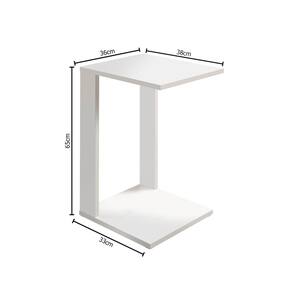 Descritivo: -Disponível na cor branco semi brilhante. -peça em madeira MDF apenas matéria prima de qualidade -Altura: 65 cm -Largura: 36 cm -Profundidade Tampo Superior: 38 cm -Profundidade Tampo Inferior: 33 cm -Recomenda-se o apoio de objetos até 5kg. Ex: Notebook, livro, enfeites, pratos, copos, vasinhos de planta.