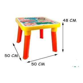 A tampa da mesinha é removível e a parte interna da mesa possui divisórias internas, perfeita para guardar materiais escolares( que não acompanham a mesa), etc. É um produto que pode ser utilizado por vários anos pela criança que pode brincar com pinturas, massinhas, slime, jogos e tudo mais que sua imaginação desejar. É ótima para espaços pequenos, fácil desmontar e guardar. É de plástico sendo muito fácil e prática de limpar.