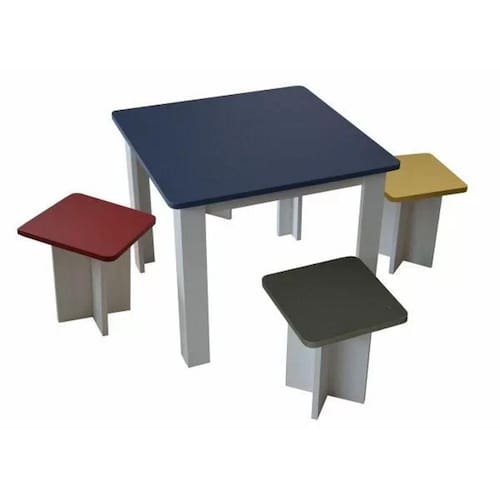 * Mesa infantil + 4 banquinhos de cores----------------------------------------------------------------------------------------------------------------------*Alto padrão;*Produzido 100% em MDF com laminado BP;*Móveis resistente à agua através da tecnologia de colagem PUR; *Nossos produtos não são produzidos em série, são frutos da marcenaria moderna feitos um a um por profissionais experientes e com tecnologia de ponta;*Não produzimos móveis em pintura, aglomerado ou MDP, ----------------------------------------------------------------------------------------------------------------------*Alta durabilidade;*Fácil limpeza;----------------------------------------------------------------------------------------------------------------------*Acompanha buchas, parafusos e suportes para montagem;*Enviado desmontado com instruções de montagem;*Solicite ajuda profissional para montagem;*Embalagem resistente;----------------------------------------------------------------------------------------------------------------------*Caso entrega seja em apartamento, as transportadoras entregam na portaria.----------------------------------------------------------------------------------------------------------------------
