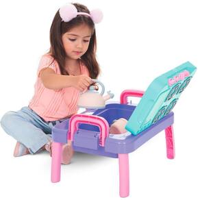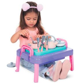 Mesinha Infantil Cozinha Gourmet para Bebês Acima de 1 ano Mesinha Infantil Cozinha Gourmet para Bebês Acima de 1 ano Menina A Mesinha Baby Gourmet é uma mesinha para entrar em outro mundo, o mundo do faz de conta. Com muita diversão, as crianças ficarão encantadas de brincar de cozinhar Ela conta com botões que simulam o sons de botões de fogões normais tec-tec ; tem 4 bocas de fogão, espaço para corte de alimentos, espaço para utensílios e seu tampo abre. Além disso, ela vem junto com 1 panela , 1 chaleira, 1 panela, 1 frigideira e 4 utensílios. Ela também acompanha suporte para pendurar os utensílios com fita dupla-face para colar onde preferir . Tem pés retráteis para facilitar e aumentar a praticidade do seu transporte, levando para onde quiser Características principais: Idade recomendada: Para bebês acima de 1 ano. Material: Feito com materiais seguros e duráveis, adequados para crianças pequenas. Desenvolvimento: Ajuda no desenvolvimento da coordenação motora fina, habilidades sensoriais e criatividade. Segurança: Conforme com as normas de segurança, garantindo um ambiente seguro para a brincadeira. É um brinquedo que combina diversão e aprendizado, ideal para os primeiros passos na jornada educativa dos pequenos. Faixa Etária: Acima de 1 ano Marca: mercotoys Categoria: brinquedos Educativos / Brinquedos 1 Ano / Brinquedos Bebês / Brinquedos 12 Meses Medidas: 53 x 31 x 10 Homologação Inmetro: CE-BRI/IQB 005923 53890/20-012 Marca: Não Informado Ean: 7896885209712