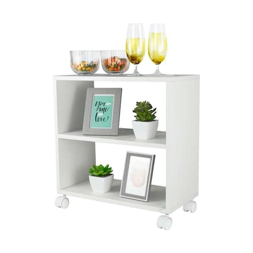Mesinha Lateral De Apoio Branca Sala Quarto 50 X 47 X 25cm Com Rodinhas Transforme seu espaço com praticidade e elegância com a Mesinha Lateral de Apoio Branca Valencia! Com design compacto, esta mesinha é perfeita para otimizar o ambiente, oferecendo um suporte versátil para livros, bebidas, laptops e outros itens essenciais do dia a dia.