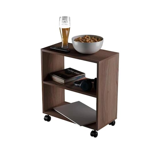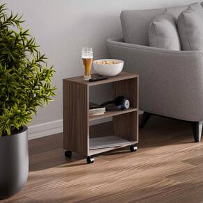 Transforme seu espaço com praticidade e elegância com a Mesinha Lateral de Apoio Nogal Valencia!