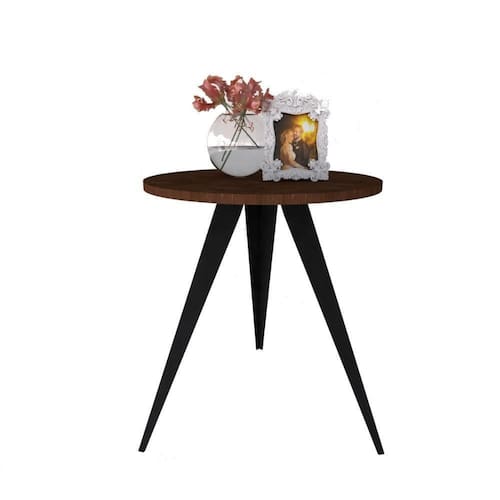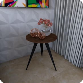 Mesinha Lateral De Canto Para Sala e Quarto Redonda P.M A Mesinha de Canto Evidence é ideal para compor salas e quartos, pois seu projeto utilizam madeira e aço, o que a torna atemporal com muita versatilidade na hora de combinar cores e outros elementos para os mais diferentes estilos decorativos. Querendo uma Mesinha de Canto Exclusiva e diferente do que há no mercado para você arrasar na decoração O grande charme são os traços de seus pés com estilo retrô, fabricados em aço resistente e durável, já que recebem uma camada de proteção contra ferrugem com acabamento de pintura eletrostática epóxi, para evidenciar o tampo de madeira. Mesinha de Canto é super versátil podendo ser utilizada para colocar copos e xícaras, apoiar controles remotos, descansar livros e óculos, deixar o celular carregando, expor as bebidas, apoiar a luminária ou o abajur e entre outros. BENEFÍCIOSAcabamento PremiumResistenteQualidade garantida com Corte a Laser do AçoPintura Eletrostática Epóxi com tratamento anti-ferrugemBatoque Emborrachado nos pés para não riscar o piso ou escorregarDesigner Exclusivo e Inovador dos Pés ESPECIFICAÇÕES TÉCNICAPeso Suportado: 35KgMaterial dos pés: AçoMaterial do Tampo: Madeira MDP 15mmAcabamento da Estrutura dos pés: Pintura Eletrostática EpóxiCor dos pés: Preto FoscoCor do Tampo: AmadeiradoRequer Montagem: SimNível de Dificuldade de montagem: FácilConteúdo da Embalagem: 1 Mesa de Canto MEDIDAS:Diâmetro do Tampo: 45CmAltura dos pés: 50CmAltura Total: 51.8cm