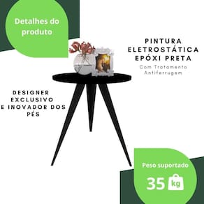 Querendo uma Mesinha de Canto Exclusiva e diferente do que há no mercado para você arrasar na decoração O grande charme são os traços de seus pés com estilo retrô, fabricados em aço resistente e durável, já que recebem uma camada de proteção contra ferrugem com acabamento de pintura eletrostática epóxi, para evidenciar o tampo de madeira.