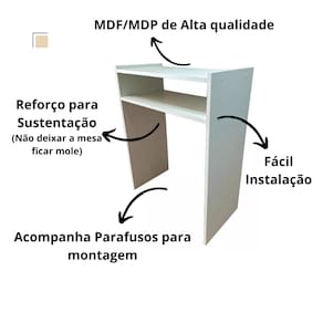A mesa é produzida em MDF/MDP de alta qualidade, garantindo que ela seja resistente e durável ao longo do tempo.