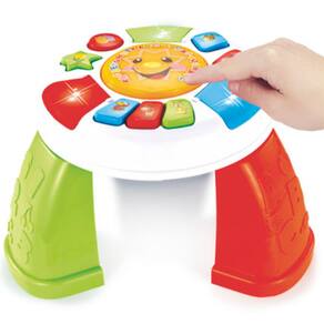 Informações do Produto: Mesinha Musical possui luzes que piscam de acordo com o ritmo das canções, botões interativos e iluminados que ajudam na percepção das cores e estimulo da imaginação e criatividade.