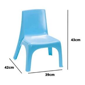 A cadeirinha é produzida em plástico industrial de excelente qualidade na cor azul e 100% nacional e contém uma ótima ergonomia e designer moderno, gerando conforto e segurança para as crianças. Pode ser utilizada para: desenhar, pintar, brincar, conversar, estudar e muito mais. Além de tudo, é empilhável, super leve e muito fácil de transportar.