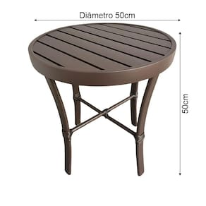 AS IMAGENS SÃO MERAMENTE ILUSTRATIVAS E PODEM SOFRER VARIAÇÕES DE COR E PEQUENOS DETALHES DE ACORDO COM O SEU MONITOR, ILUMINAÇÃO DO AMBIENTE E ATÉ MESMO A SUA PERCEPÇÃO VISUAL.Mesinha Ripada Redonda DiÃmetro De 0.50m AlumÃnio Marrom