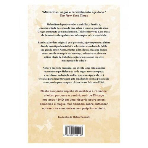 Neste suspense repleto de mistério e romance, o leitor percorre o cenário noir de Chicago nos anos 1940 em uma história sobre anjos, demônios e magia, mas também sobre enfrentar opressores e encontrar seu próprio caminho. Helen Brandt perdeu tudo: o trabalho, a família e, em uma atitude desesperada para salvar o irmão, a própria alma. Graças a um pacto demoníaco, Teddy sobreviveu e, em troca, ela foi condenada a padecer no inferno por toda a eternidade. Expulsa da ordem mágica à qual pertencia, a jovem passou a última década investigando mistérios sobrenaturais ao lado de Edith, seu grande amor. Agora, prestes a dar adeus à vida que dividia com a amada e cumprir sua sentença, ela recebe uma última oferta de trabalho: capturar o assassino em série mais temido da cidade. Ao ter a proposta recusada, sua cliente lança mão da única recompensa que a detetive não pode negar: reverter o pacto e envelhecer ao lado da mulher que ama. Agora, ela terá três dias para descobrir quem está fazendo vítimas pela cidade ou perder para sempre a chance de ser feliz com Edith.