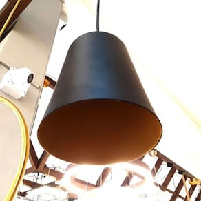 Metaldomado Pendente Baldy P Pt Fc Dr 5556.03.04 ESPECIFICAÇÕES TÉCNICAS: Estrutura em Alumínio Preto Fosco e Dourado. Medidas: 13cm(D) x 14cm(A). Altura máxima do cabo: 170cm. 1 soquete para lâmpada E27 (Lâmpada não inclusa).