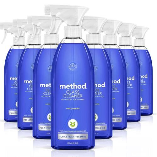 Method Spray de limpeza de vidro, menta, sem amônia e solução à base de plantas, limpador de espelho e janela – ótimo para superfícies de vidro internas e externas, frascos de spray de 800 ml (pacote