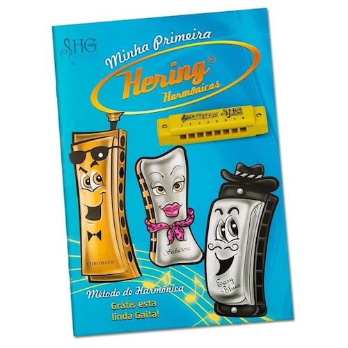 O Método Minha Primeira Hering com gaita inclusa possui 16 páginas com informação, desenhos e músicas. O método vai fazer você tocar em pouco tempo. Mesmo que você nunca tenha tocado nenhum instrumento antes, esse método contém tudo que você precisa saber para tocar algumas de suas músicas favoritas imediatamente!