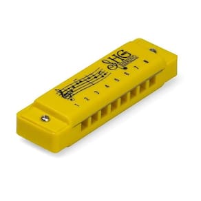 Livro Método Minha Primeira Gaita da Marca Hering. Livro com 16 página com exercícios práticos e desenhos para colorir. Livro acompanha uma gaita pequena na afinação C-DÓ na cor amarela.