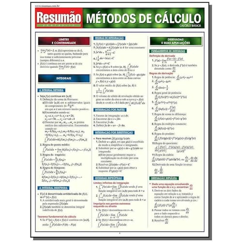 Este guia prático é um excelente material de apoio para descomplicar o aprendizado da matemática. Os conceitos básicos de cálculo são escritos e revisados por especialistas e seu conteúdo está organizado de maneira que você possa encontrar rapidamente as respostas para as suas perguntas e os temas de seu interesse: limites, derivadas, modelos exponenciais, probabilidade, cálculo de funções de duas variáveis e equações diferenciais estão entre os temas abordados. Juntos, os títulos de cálculo (Resumão Cálculo 1 e Resumão Cálculo 2) cobrem os pontos mais importantes dessa complexa matéria. Direto ao ponto, fácil de guardar, ótimo para aprender e relembrar para as provas.