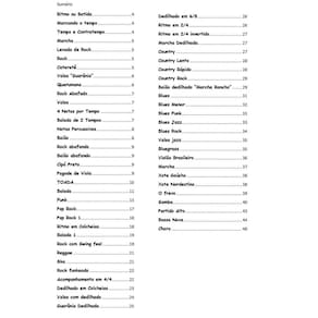 O manual contém mais de 130 Ritmos de diversos estilos distribuídos em 50 páginas Todos os 130 ritmos são demonstrados em vídeos de forma clara e sugerindo formas de praticar até o completo domínio. Os contatos do autor estão na apostila e você pode solicitar os vídeos com a execução de todos os exemplos