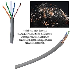 O cabo U/UTP GIGA para redes de dados categoria CAT.6, é ideal para instalação e aplicação em redes IP Home & Office. Os cabos possuem como seu condutor interno puro cobre, garantindo a transmissão de dados mantendo a integridade do sinal, sendo assim a categoria CAT.6 também garante velocidade superior as categorias mais antigas. Homologado pela ANATEL. O cabo IMPACT GIGA é ideal para utilização em redes IP Home & Office agregando confiabilidade e facilidade na sua instalação. 8 vias de cobre 23 AWG; Frequência de operação: até 250 MHz Impedância 100 Ohms; Classificação frente à chama CMX 70ºC; Condutores sólidos de cobre; Capa isolante em PVC; Sem blindagem; Uso interno. Condutores 100% em cobre O condutor interno em fios de puro cobre garante a integridade do sinal na transmissão de dados, potencializando a velocidade da conexão. Redes com mais velocidade e estabilidade O cabo CAT6 é indicado para empresas que dependem de grandes velocidades de transmissão e do mínimo de interferência eletromagnética para entregar conexão de qualidade. Homologado pela ANATEL Produto com qualidade garantida pela ANATEL. Seguindo total compatibilidade com as normas brasileiras e mundiais para funcionamento de equipamentos em redes IPs.