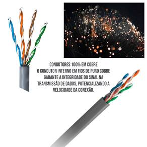 Construção Robusta: Condutores em cobre puro de 24AWG (American Wire Gauge), garantindo baixa perda de sinal e maior durabilidade.