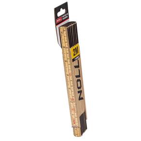 Modelo: Metro Dobrável de Madeira. Material da Fita: Madeira. Unidades de Medida: mm - cm. Comprimento do Metro m : 2.