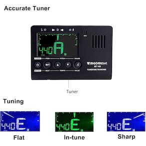 - ? Dispositivo 3 em 1 --- Metrônomo, sintonizador digital e gerador de tom, dispositivo 3 funções em 1 para guitarra acústica e elétrica, cromático, baixo, ukulele, violino -- bateria incluída.