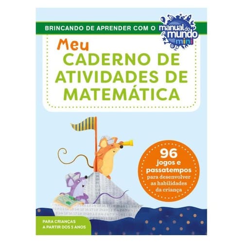 O MANUAL DO MUNDO APRESENTA O FASCINANTE UNIVERSO DOS NÚMEROS. 96 jogos e passatempos para desenvolver as habilidades da criança. * Indicado para crianças a partir dos 5 anos. Repleto de jogos desafiantes e divertidos, Meu caderno de atividades de matemática torna o mundo dos números ainda mais atraente. Seu pequeno aprendiz vai adorar decifrar os quebra-cabeças, desvendar os códigos escondidos e se aventurar por todos os exercícios elaborados para estimular seu raciocínio e sua criatividade. • UM FESTIVAL DE PASSATEMPOS: dê adeus à monotonia e se prepare para horas de diversão com quase uma centena de atividades! • EDUCATIVO E DIVERTIDO: veja a magia da descoberta nos olhos da criança à medida que ela vai vencendo desafios e adquirindo novos conhecimentos. • IDEAL PARA CRIANÇAS NO JARDIM DE INFÂNCIA: contribua para o aprendizado dos pequenos de maneira lúdica, com atividades ideais para aprofundar o que eles já estão vendo na escola. LETRAS E LEITURA • NOÇÕES DE MATEMÁTICA • CIÊNCIAS • ESTUDOS SOCIAIS • E MUITO MAIS!
