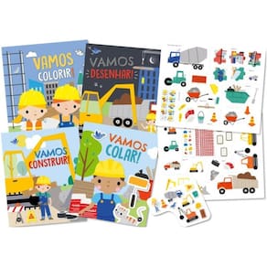 Esta incrível caixa de atividades está recheada com um divertido canteiro de obras! Aqui dentro há 4 livros com enigmas, jogos e atividades para desenhar e colorir, além de mais de 75 adesivos para as atividades e 10 lindos adesivos puff para alegrar o seu dia!