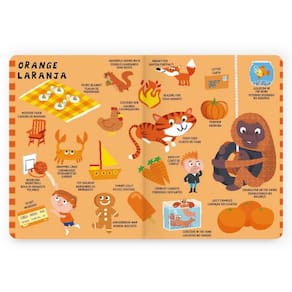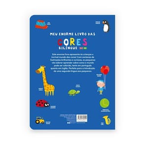 Este enorme livro apresenta às crianças o incrível mundo das cores! Com centenas de ilustrações brilhantes e curiosas, os pequenos vão adorar aprender sobre como o mundo pode ser colorido, tanto em português quanto em inglês. Perfeito para a introdução de uma segunda língua ou estudo de língua estrangeira aos pequenos.