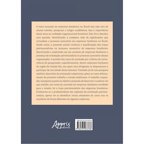 O tema sucessão de empresas familiares no Brasil tem sido alvo de muitos estudos, pesquisas e artigos acadêmicos, face à importância desse tema na realidade organizacional brasileira. Este livro abordou essa questão, identificando a complexa rede de significações que circundam o processo sucessório em empresas familiares no Brasil. Sendo assim, o presente estudo verificou a manifestação dos traços patrimonialistas no processo sucessório de empreendimentos brasileiros, descrevendo e analisando em um conjunto de empresas familiares a presença de orientação patrimonialista no processo sucessório dessas organizações. A escolha dos casos foi norteada por critérios de conveniência do pesquisador, especificamente, dentre empreendimentos familiares da região do Grande Rio, nas quais seus dirigentes se dispusessem a participar de um estudo desta natureza. Tratando-se de uma pesquisa analítico-descritiva de orientação subjetivista, optou-se como delineamento do presente trabalho o estudo multicasos. O trabalho respondeu à pergunta quanto ao objetivo proposto de descrever e analisar em que medida, nos casos de sucessão em empresas familiares escolhido para o estudo, há o traço patrimonialista das companhias brasileiras. Evidenciou-se a predominância dos aspectos de orientação patrimonialista, apesar de se identificar certos elementos de como isso se manifesta de forma diferente em algumas empresas.