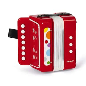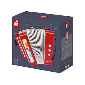 Ouvir diferentes sons, manipular um instrumento, seguir um ritmo, são experiências sensoriais muito benéficas. O teclado deste brinquedo acordeão está equipado com 7 teclas para notas musicais, 2 teclas para mudanças de tom e 1 tecla para soprar o ar.