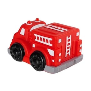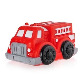 O Meu Primeiro Carrinho de bombeiro é inteiro de vinil fofinho, com formato anatômico para facilitar a brincadeira do bebê. Um carrinho de 15 cm cheio de cores com a temática de bombeiro.