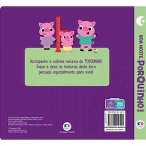 Acompanhe a rotina noturna do PORQUINHO Toque e sinta as texturas deste livro pensado especialmente para você Meu primeiro livro de Feltro, desenvolvendo a percepção tátil do seu pequeno, com cores alegres e ilustrações lindas.