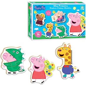O Peppa Pig Meu Primeiro Quebra-cabeça de madeira é o jogo perfeito para estimular o desenvolvimento cognitivo e motor das crianças. Composto por 14 peças, o quebra-cabeça é adequado para crianças que estão começando a explorar esse tipo de brinquedo. Ao jogar, a criança estará desenvolvendo suas habilidades de observação, coordenação motora e memória, ajudando-a a aprimorar suas habilidades e aprender enquanto se diverte com os personagens adoráveis de Peppa Pig. O Peppa Pig Meu Primeiro Quebra-cabeça é uma ótima opção de presente para crianças em idade pré-escolar que estão começando a explorar o mundo dos quebra-cabeças e jogos educativos.