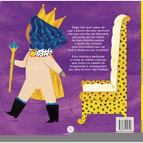 Tiago não queria saber de usar o penico de jeito nenhum! Foi brincando no banheiro que ele descobriu que poderia ser um nobre da mais distinta realeza começando a partir daí uma brincadeira que vai levá-lo direto ao troninho, ops ... melhor dizendo ao penico! Meu Reino por um troninho é uma história para quem faz de tudo para sentir um pouco de alívio quando está apertado. Uma história para todas as nobres crianças que vivem no seu castelo de imaginação e ainda não conseguiram se livrar das fraldas! Marca: CIRANDA NA ESCOLA