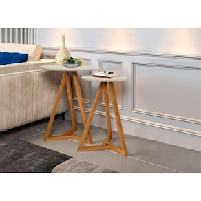Este conjunto de mesas laterais é muito charmoso e útil, pode ser utilizado para compor vários ambientes