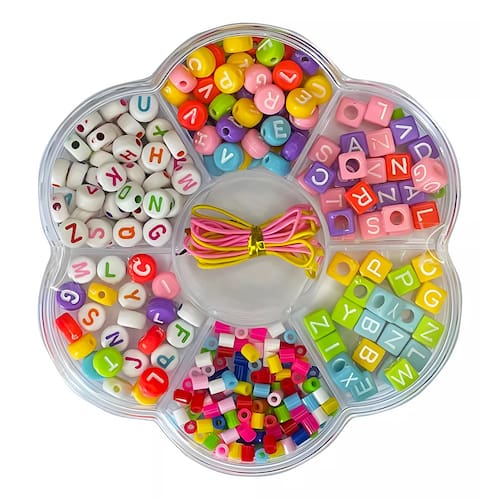Variações Diversificadas: Inclui bolinhas coloridas vibrantes, miçangas em forma de corações e letras, permitindo que as crianças soltem a criatividade na hora de montar colares, pulseiras e muito mais.Estimula a Coordenação Motora: Trabalhar com as miçangas desenvolve a destreza manual e a coordenação motora fina, enquanto as crianças se divertem criando suas obras de arte.Atividade Educativa: As miçangas com letras ajudam as crianças a aprender o alfabeto, promovendo o reconhecimento de letras e palavras de maneira lúdica.Material Seguro: Fabricadas com materiais atóxicos e duráveis, as miçangas são seguras para as crianças usarem em suas criações.Detalhes do Produto: