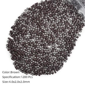 Diâmetro externo * Diâmetro interno * Comprimento: 4,0 mm x 2,0 mm x 2,0 mm Os microanéis com silicone protegerão seu cabelo e evitarão que as extensões de cabelo escorreguem facilmente. Material: Silicone e alumínio Oferecemos microanéis de 5 cores para você escolher, você pode encontrar a cor que é prateada com suas extensões de cabelo. Estes 4 mm são mais fáceis de esconder, você só precisa ter cuidado com o que eu dou para garantir que eles caibam na conta. Geralmente pode ser utilizado para inserir extensões de cabelo com ponta de 0,5 g. Se o seu suporte de cabelo tiver mais de 0,5 g/mecha, você pode remodelá-lo antes de usar. - Vlasy é uma marca registrada nos EUA, e nossos negócios variam de extensões de cabelo humano a todos os tipos de acessórios de cabelo, como fita de extensão de cabelo, anéis de extensões de cabelo, etc. Temos nossa equipe de P&D, e desenvolveremos novos produtos todos os anos e melhoraremos nossos produtos e serviços o tempo todo. - 100% microcontas de silicone de alta qualidade, forro de silicone interno para proteger seu cabelo natural, microcontas forradas de silicone forte para extensões de cabelo. - Embalagem: 1200 peças de microanéis de 4 mm por pacote. Os forros de silicone de 4 mm são perfeitos para homens com cabelo fino que desejam adicionar comprimento e volume. Este tamanho pequeno é mais fácil de esconder do que microcontas de 5 mm. - Cores disponíveis: preto, marrom, loiro, marrom claro, marrom escuro - Use para extensões de cabelo Stick/I Tip, extensões de cabelo de penas, extensões de cabelo micro anel, etc. E estes microanéis de 4 mm só podem ser utilizados em cabelos com ponta I cujo peso é inferior a 1 g.