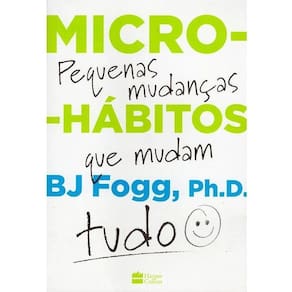 Título do livro : Micro-hábitos Subtítulo do livro : As pequenas mudanças que mudam tudo Autor : Fogg, B.J. Idioma : Português Editora do livro : Casa dos Livros Editora Ltda Capa do livro : Mole Com índice : Não Ano de publicação : 2020 Quantidade de páginas : 336 Altura : 230 mm Largura : 155 mm Peso : 500 g Com páginas para colorir : Não Com realidade aumentada : Não Tradutores : Clapp Roberta, Fiuza Bruno Gênero do livro : Autoajuda Subgêneros do livro : Autoajuda, Desenvolvimento pessoal, Psicologia popular Tipo de narração : Conto Idade mínima recomendada : 18 anos Data de publicação : 13-04-2020