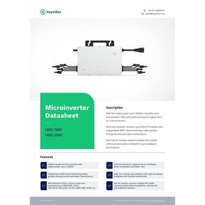 SEM DTU O Micro Inversor Hoymiles-1800W-4T -Monofásico 220V é um dispositivo de alta tecnologia projetado para converter a energia solar em energia elétrica de alta qualidade. Com um projeto de circuito avançado, o micro inversor é capaz de maximizar a eficiência de conversão de energia, alcançando até 96,7% de eficiência.Com quatro terminais de saída e uma capacidade de saída máxima de 1800W, este micro inversor é adequado para sistemas de energia solar de pequeno e médio porte. O Micro Inversor Hoymiles-1800W-4T -Monofásico 220V também vem com recursos de proteção integrados, incluindo proteção contra sobretensão, sobrecorrente e superaquecimento, garantindo a segurança e confiabilidade do sistema.Além disso, o Micro Inversor Hoymiles-1800W-4T -Monofásico 220V possui um design compacto e fácil de instalar, permitindo uma instalação mais rápida e fácil. Isso significa que você pode ter seu sistema de energia solar em funcionamento em pouco tempo, economizando tempo e dinheiro em sua instalação.Em resumo, o Micro Inversor Hoymiles-1800W-4T -Monofásico 220V é uma solução altamente avançada e confiável para sistemas de energia solar de pequeno e médio porte. Com sua alta eficiência de conversão de energia, recursos de proteção integrados e design compacto, este micro inversor é uma escolha ideal para quem procura maximizar a eficiência de seu sistema de energia solar. SEM DTU