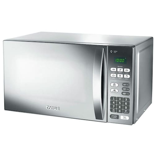 Micro-ondas 20 Litros Consul com Porta Espelhada e Puxador. Menu Uso Fácil para aquecimento e descongelamento. 6 receitas pré-programadas. Função 'Desligar Visor' para economia de energia. Comando 'Cancelar' para interromper preparo e travar teclado. 10 níveis de potência. Comando 'Ligar + 30 Segundos'. Display Digital. Relógio.Função Grill