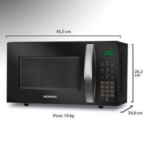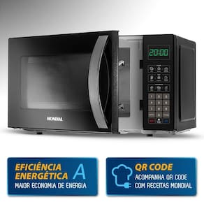 Micro-ondas Mondial: o MO-01-21-B 21 litros é preto, COMPACTO e cabe em todas as cozinhas. Tem 10 NIVEIS DE POTENCIA, 127v e tem muitas FUNÇÕES: TIRA ODOR, DESCONGELAR, MANTER AQUECIDO, MENU KIDS e DIA A DIA. Com PRATO GIRATÓRIO e tecla INICIAR FÁCIL de 30 segundos este forno micro-ondas de 21L é compacto (micro-ondas 20L a 23L), ocupando o menor espaço possível em sua cozinha. O micro-ondas Mondial conta com 10 níveis de potência para fazer pipoca, pão, pudim, bolo de caneca, brigadeiro, aquecer e manter aquecido - e ainda descongela alimentos com apenas um toque. Sua potência de 1.200W proporciona mais rapidez e eficiência nos preparos e descongelamentos. Tem funções de uso frequente (Menu Dia a Dia e Menu Kids) e funções que deixam a vida mais prática como TIRA ODOR, MANTER AQUECIDO, +30 SEGUNDOS e FUNÇÃO RELÓGIO. Sua TRAVA DE SEGURANÇA permite um uso mais seguro. Quer saber receitas práticas e deliciosas para fazer em seu micro-ondas, basta acessar o QR CODE inserido na porta e terá acesso ao RECEITAS MONDIAL, praticidade e facilidade para você. Micro-ondas com a qualidade Mondial, marca líder no Brasil em diversos produtos eletroportáteis da cozinha e ventiladores. 1 ano de garantia. A Mondial é a escolha de milhões de consumidores.