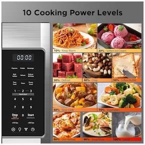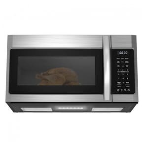 Micro-ondas sobre o fogão com exaustor integrado, 1000 watts de potência, 10 níveis de potência, 6 menus rápidos (Pipoca, Bebida, Derreter/Amolecer, Reaquecer, Descongelar), Cozimento rápido (números 1, 2, 3 para potência máxima em 13 minutos), Cozimento em múltiplos estágios, Exaustor de 300 CFM com luz integrada, Prato giratório de 12,4 polegadas, Controle Touch.Função Grill