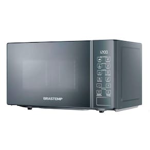 Micro-ondas Brastemp 20 Litros com design espelhado, 10 níveis de potência, menu especial com receitas pré-programadas, funções de pré-preparo e Auto Clean.Função Grill