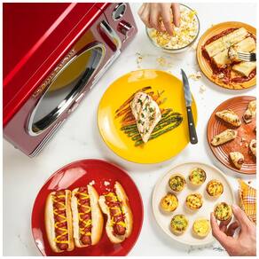 Micro ondas de bancada 25 litros, 800W de potência, 12 configurações pré-programadas, display LED, carrossel de vidro giratório, acentos retrô cromados.Função Grill