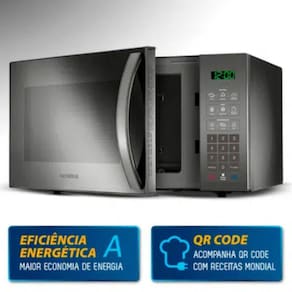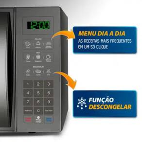 Funções que vão facilitar o dia. Com sua capacidade de 34 litros ele permite a utilização de alimentos em pratos, recipientes e refratários, assim você consegue preparar refeições para você e para a família toda. Além de ter funções de uso continuo como menu dia a dia, menu kids, botão +30 segundos, manter aquecido e tira odor.
