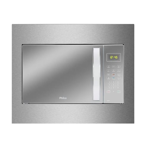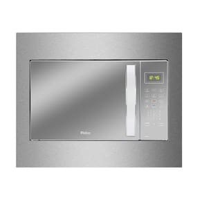 Micro-ondas de embutir Philco 37L com 1400W de potência, porta espelhada, funções Limpa Fácil, Fit, Manter Aquecido, Descongelar Rápido/por Peso, Função Potência, Relógio e Tira odor. Classe A em eficiência energética.Função Grill
