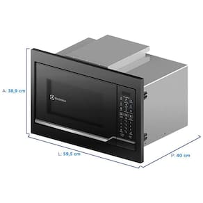 Micro-ondas de embutir com 34L de capacidade e 1400W de potência. Possui menus automáticos (Kids, Light, Dia a Dia, Favoritos), Função Tira Odor, Tecla de descongelar e Trava de segurança. Design de embutir e eficiência energética Classe A.Função Grill