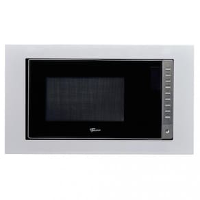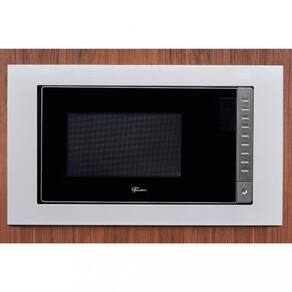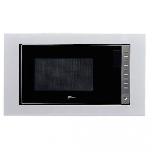 Micro-ondas de embutir Fischer Fit Line 25L com 5 níveis de potência, funções de descongelamento por tempo e peso, automenu (8 opções), relógio 24h, trava de segurança e display digital.Função Grill