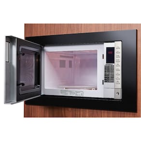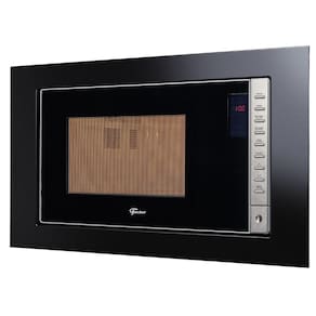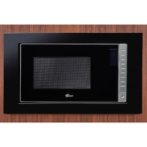 Micro-ondas de embutir Fischer 25L com funções de descongelamento por tempo e peso, automenu (8 opções), relógio 24h, trava de segurança, 5 níveis de potência e display digital.Função Grill
