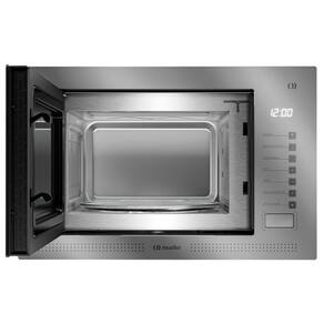 Micro-ondas de Embutir Mueller 25 L Espelhado (MME25K): acabamento sofisticado com vidro espelhado + inox, capacidade de 25 litros, potência total de 1450 W, painel digital touch com 5 níveis, função descongelar por tempo ou peso, timer com aviso sonoro, luz interna. Elegância e praticidade para sua cozinha planejada.